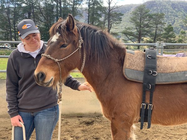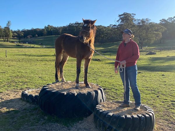 It’s a hive of activity and a whole new environment so I had planned to let him settle, meet my other horses and have some time to decompress.. but Banjo had other plans. He has been so settled and so calm, we did a few sessions day one in the larger round yard and finally out of the mud!! Within minutes of our first time in the round yard Banjo had a saddle blanket and roller rubbed all over him then thrown up onto him, tightened up and was smoothly trotting around the round yard. No fireworks, no theatrics, a willing horse, not scared, not coerced. Repetition and release is key for me with training, and I try to focus on making everything I do “normal” and not react when his energy might heighten, just focus on the task and reassure him if needed.