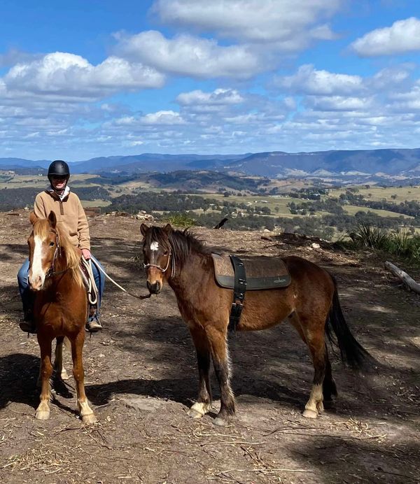 With the help of his new friend my Guy Fawkes Brumby, Tiny, we have been leading Banjo off him, getting him used to not only having me above him but having a lead horse to get him feeling confident getting over different terrain, obstacles, water, bush, you name we go through it, over it, under it. As well as being social and good friend, I like my horses to be independent too, so once Banjo got that confidence, we have gone out a lot alone too and he’s just as calm and willing.